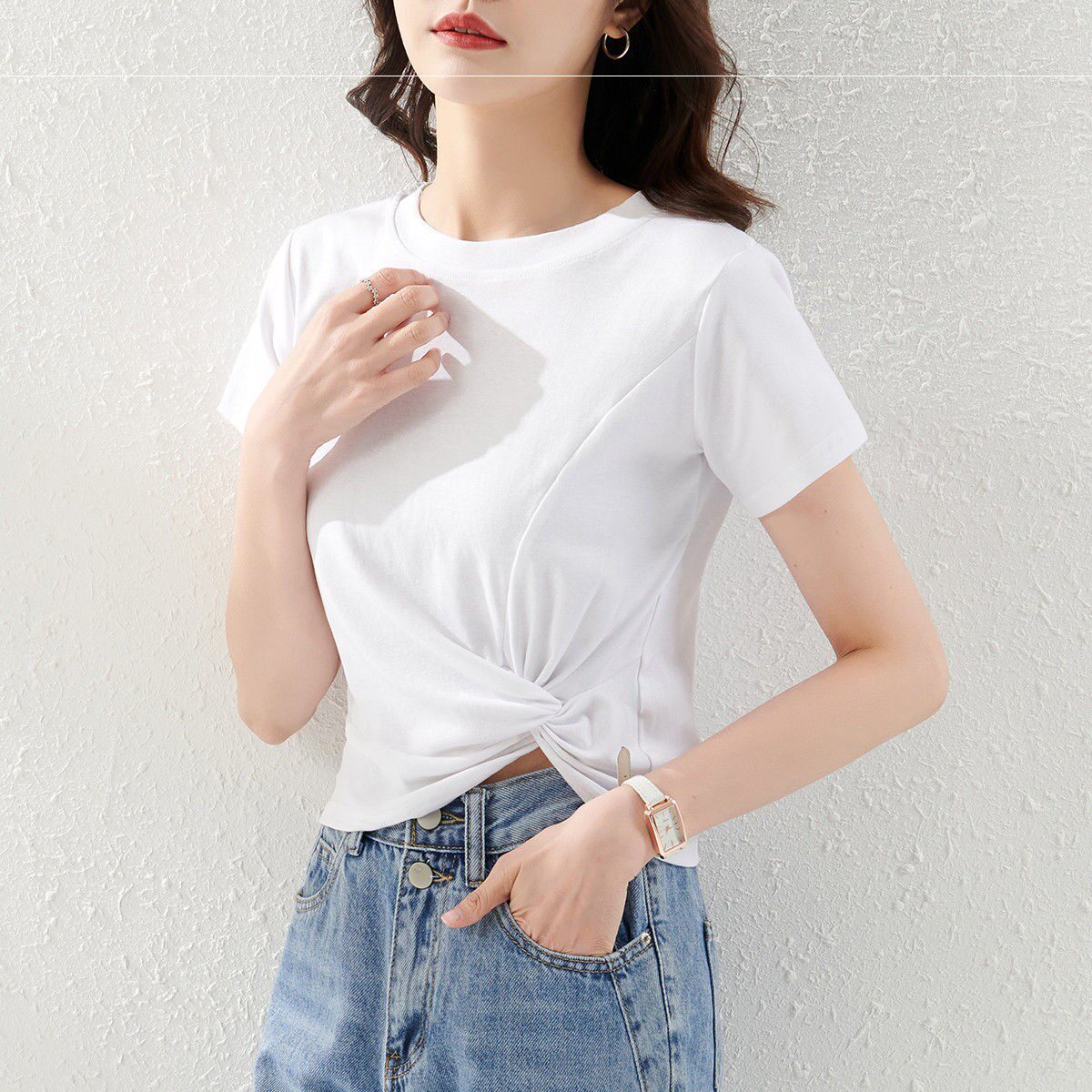 短袖t恤女设计感小众短款修身2021新款夏露脐交叉打结半袖上衣潮热门设计联盟服务商