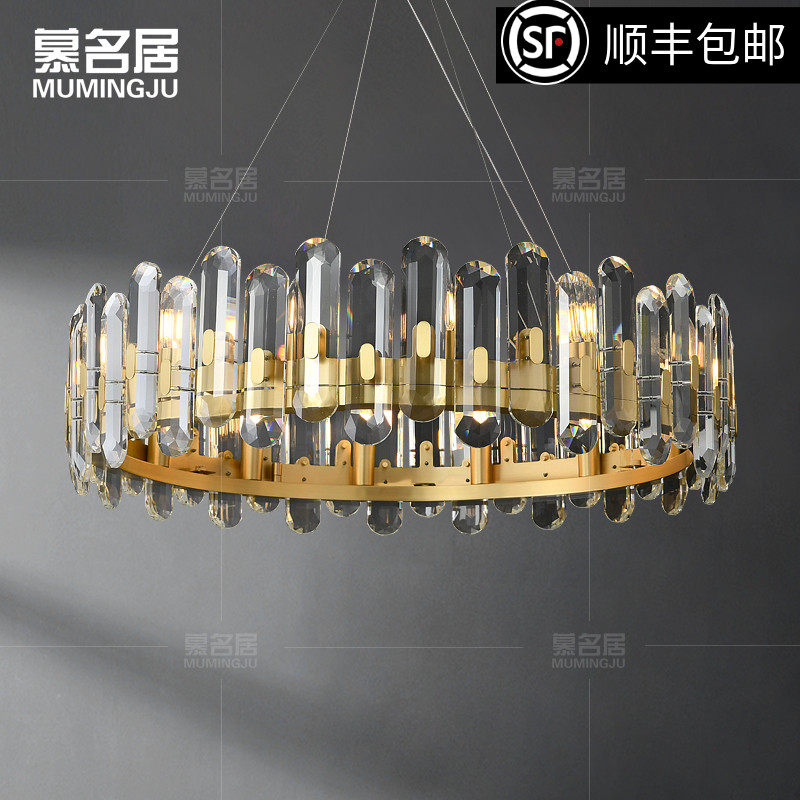 慕名居 后现代铜轻奢水晶吊灯 设计师圆形别墅客厅餐厅样板间灯热门设计联盟服务商