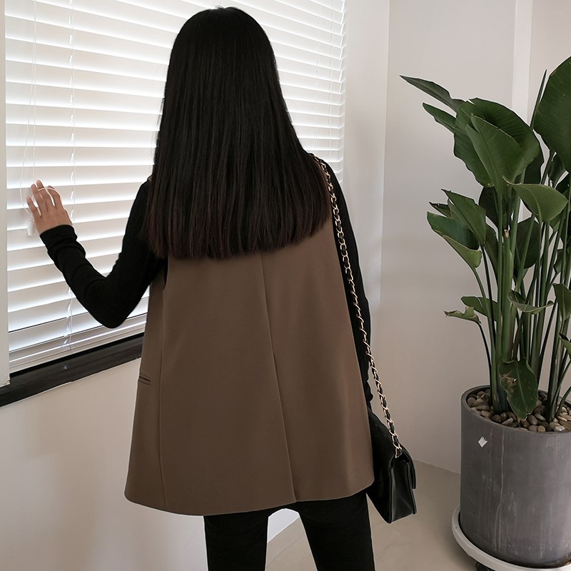 西装马甲女2021春秋新款韩版背心中长款宽松工装卡其色小个子外套热门设计联盟服务商