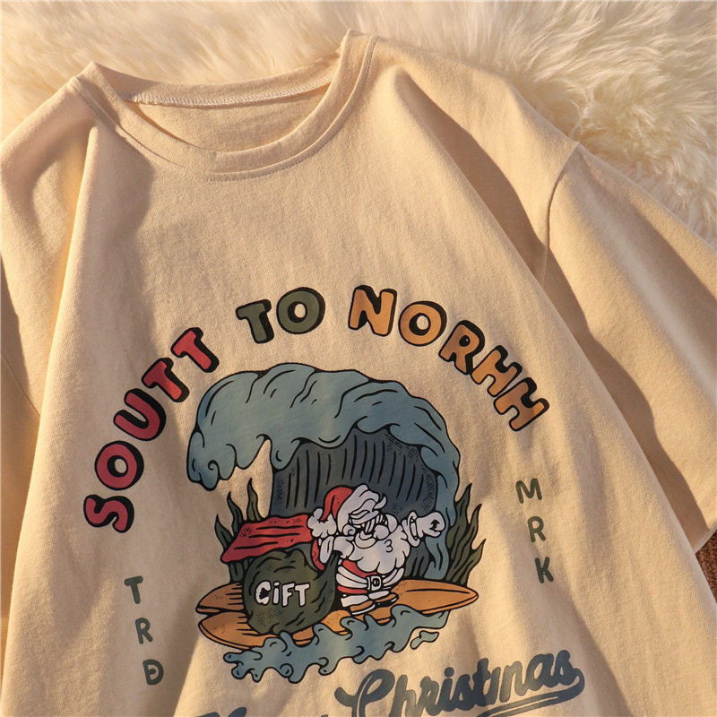 夏季纯棉印花宽松短袖女上衣女学生趣味设计感T恤女百搭打底衫热门设计联盟服务商