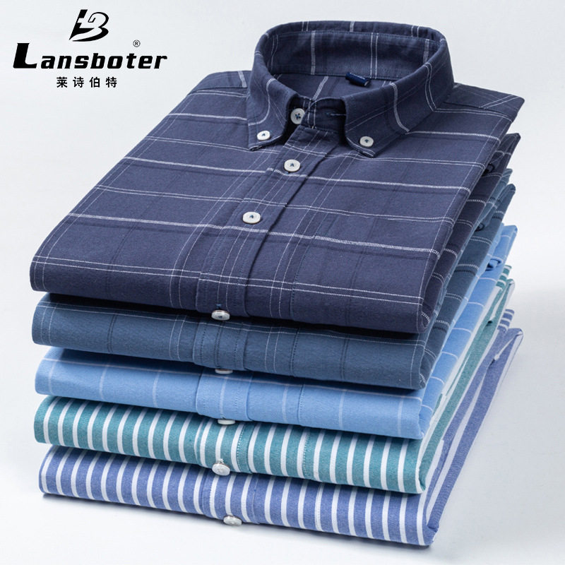 春季长袖衬衫男休闲全棉免烫牛津纺工装衬衣男士格纹百搭商务寸衫热门设计联盟服务商