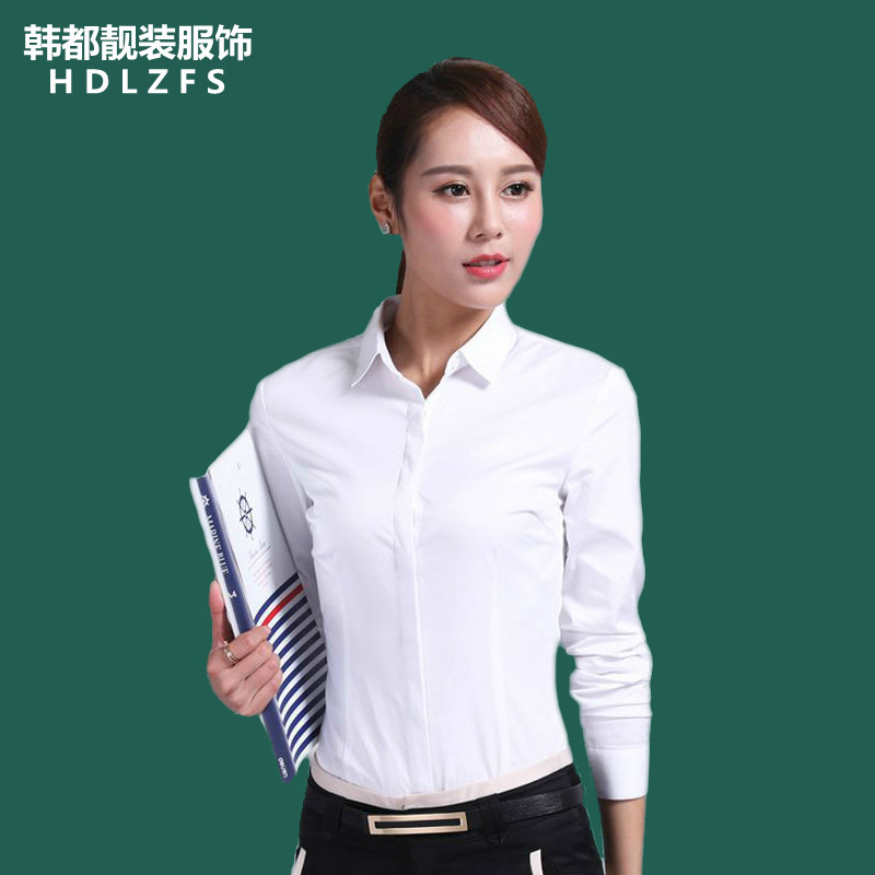 职业装白衬衫女长袖工作服暗扣百搭修身韩范春夏新款大码商务衬衣热门设计联盟服务商