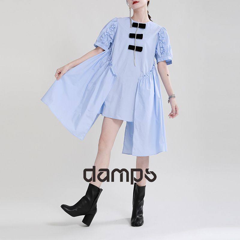2021夏新款温柔风法式泡泡袖连衣裙女纯色设计感气质中长款a字裙热门设计联盟服务商